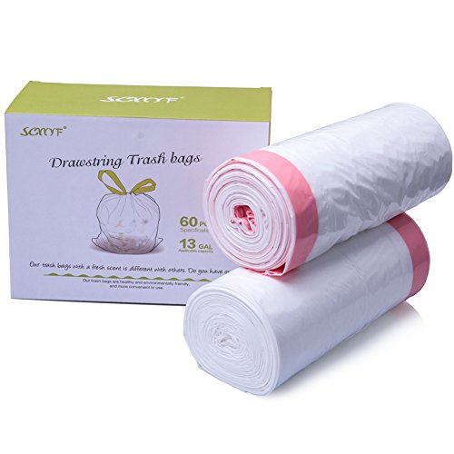SCWYF Drawstring Tall Kitchen Trash Bags Fresh clean, Extra Strong Garbage Bags For Home, Janitorial, Office, Car, 1.2 mil 13 Gallon 60 Count