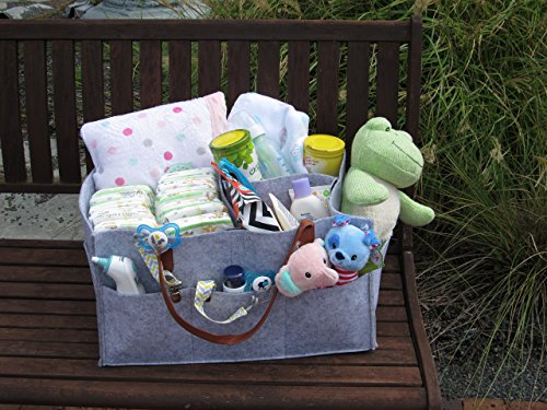 Studio : Nugget Publisher : Nugget Binding : Baby Product Product Description The Nugget Diaper Caddy has been designed with the stylish and economical mom in mind. The brown leather handles and accents set on the softest light grey felt will add a sense of luxury and style to any nursery. The Nugget Caddy is larger than other diaper caddies giving you the freedom to store more of the items you need closer to the action. The removeable and adjustable panels you can arrange the Nugget Caddy to accomodate a variety of needs. Our previous caddy was just too small, see the pictures to view the size comparison! The new Nugget Caddy can hold over 75 diapers and any baby care products you can think of. The Nugget Caddy will grow with your child! From diapers and creams to dolls and dinosaurs, the Nugget Caddy is large and versatile enough to help keep your childs nursery or playroom organized for years. 0