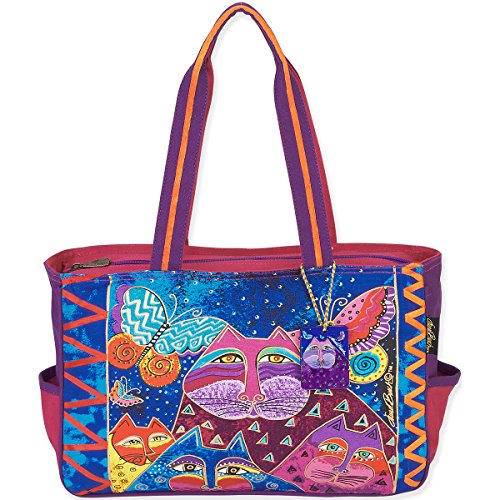 Laurel Burch Medium Tote, 15 by 4 by 10-Inch, Cats with Butterflies