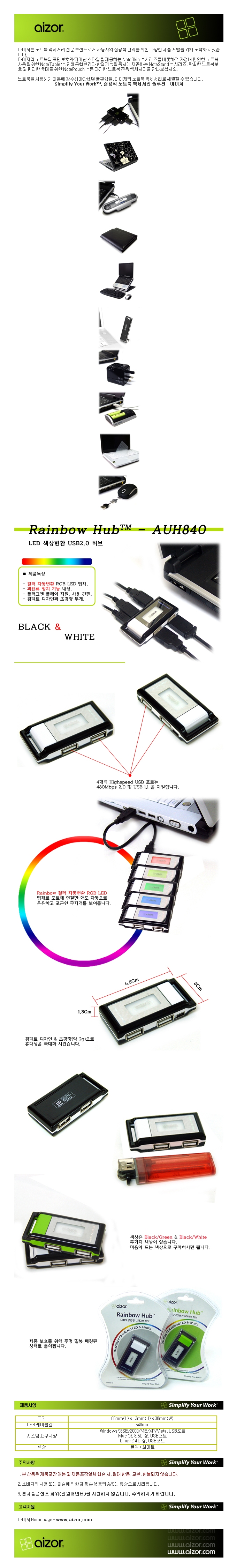 상품명 : 아이저(aizor) 무지개 허브 USB 2.0 4포트(AUH-840BW)