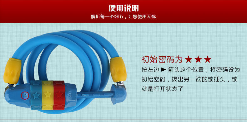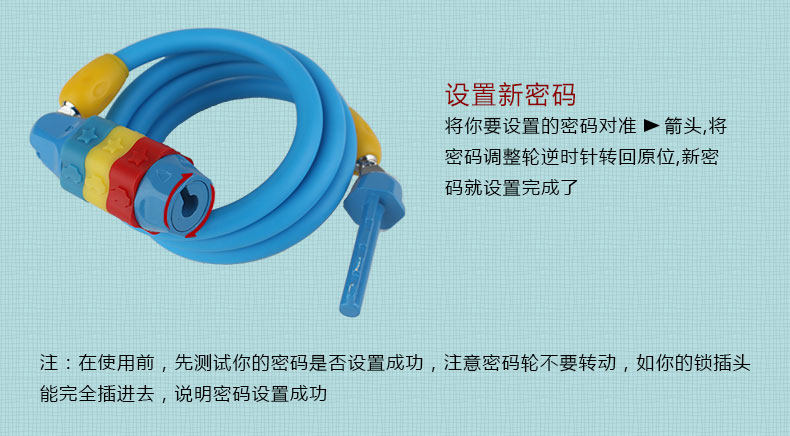 中立 迷你锁 儿童自行车锁密码锁 小孩益智密码钢丝锁 条形防盗锁 ?