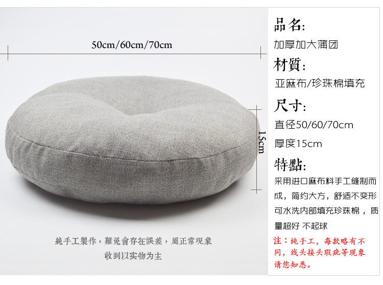 【品名】亚麻布艺蒲团坐垫(可用于飘窗、榻榻米、地板、瑜伽、打坐禅修垫、藤椅坐垫、办公室、学生宿舍等。)