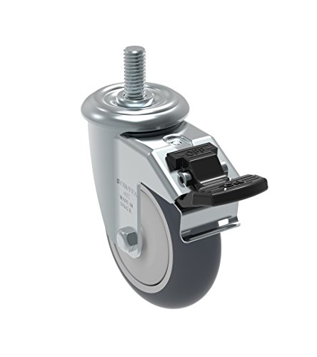 Schioppa GLEEF 412 TBE G L12 Series 4" x 1-1/4" Diameter Swivel Caster with Total Lock Brake, Non-Marking Thermoplastic Rubber Precision Ball Bearing Wheel, 3/8" Diameter x 1-1/2" Length Threaded Stem, 220 lb