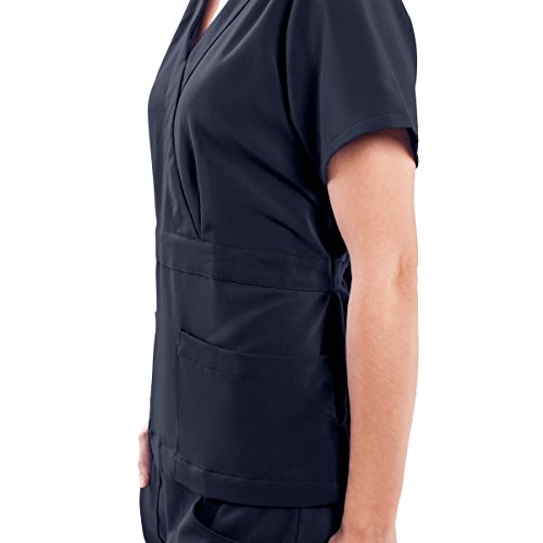 ave Scrubs Park ave Women's Scrub Top, Slimming Mock Wrap with Crossover Neckline, Navy, X-Small