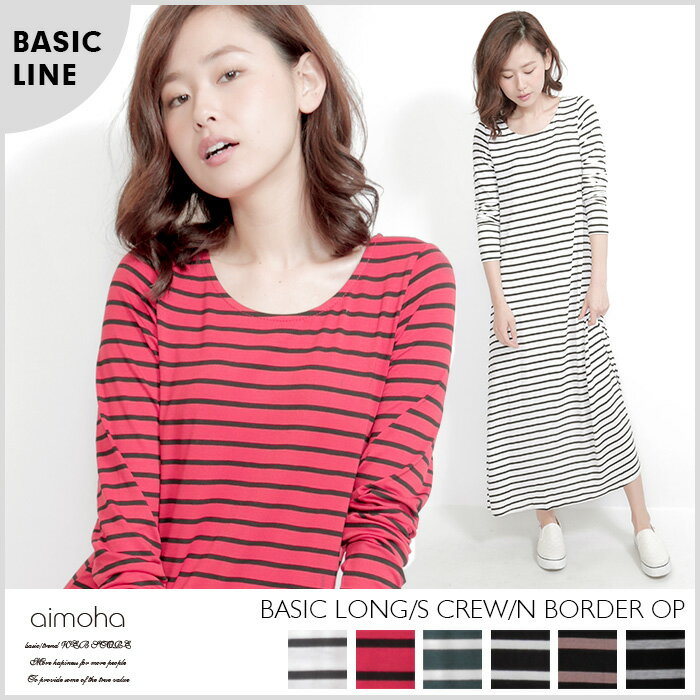 ベーシックロングスリーブクルーネックロングワンピース ベーシックショートスリーブクルーネックロングワンピース?ベーシックノースリーブクルーネックボーダーロングワンピース