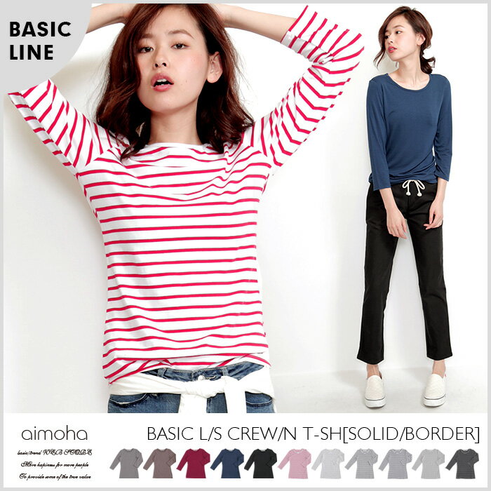 ベーシックロングスリーブクルーネックTシャツ[無地/ボーダー] ベーシックロングスリーブクルーネックボーダーロングワンピース ベーシックロングスリーブボートネックボーダーTシャツ
