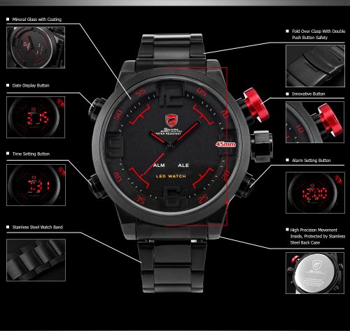 -. Binding : Watch -. Brand : Shark -. Department : Mens -. EAN : 0700371429225 -. Feature : Shark Gulper Shark series. Mens Quartz Watch / Big size design watch. XXL / We focus on the manufacturing process. Every part of every shark watch is meticulous and durable / Alarm Function.LED Date Day Display. If you need a detailed instruction manual PDF, please contact us directly or go to the official website to download / 12 months International Guarantee.With Official Box -. Label : SHARK -. Manufacturer : SHARK -. Model : SH105 -. MPN : SH105 -. PackageQuantity : 1 -. PartNumber : SH105 -. ProductGroup : Watch -. ProductTypeName : WATCH -. Publisher : SHARK -. Studio : SHARK -. Title : SHARK Men's Sport LED Wrist Watch Date Day SH105 -. UPC : 700371429225