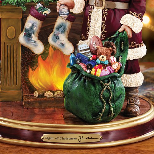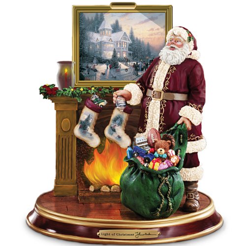 -. Feature : First-of-a-kind illuminated Santa figurine featuring the artwork of Thomas Kinkade, exclusively from The Bradford Exchange / Handcrafted and hand-painted so that each Santa figurine is a unique work of collectible art / Full of wonderful details - Santa's red suit, the toys, stockings and mantelpiece / Both fireplace and frame light up to cast a warm glow over your holidays / For important information regarding sales tax you may owe directly to your state, please check our Storefront Page by clicking on the storefront link above, and then selecting the Policies Tab