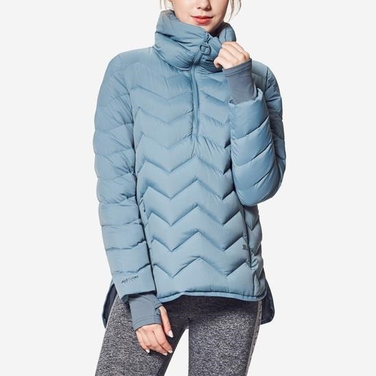 오버핏의 숄카라 아노락으로 아우터로 입거나 점퍼 안 이너로 활용가능한 티셔츠입니다.가볍고 보온성이 우수한 다운 충전재를 사용하였으며 고리가 있어 손등까지 덮는 이너 커프스가 있습니다.앞보다 뒤가 긴 길이감으로 레깅스등과 매치하기에도 좋은 아이템입니다.
