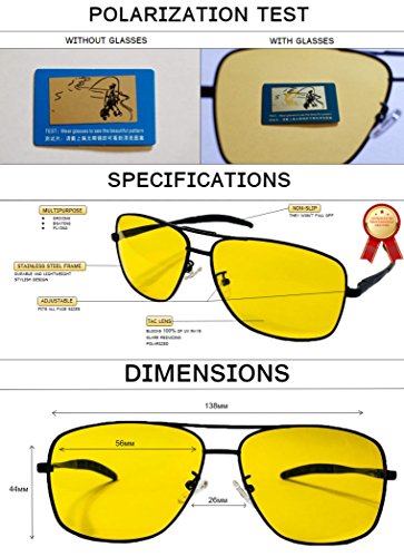 GPSEED Men's Women's Night Driving Polarized Sunglasses Stainless Steel Hot Fashion Stylish Durable Yellow Tint One Size Fits All Glasses Anti-glare Polarized