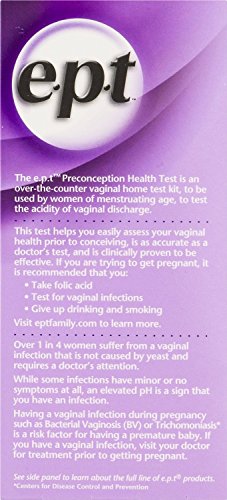 e.p.t. Preconception Health Test is for every woman who wants to get pregnant because it allows you to test your vaginal health before you conceive. Some vaginal infections are risk factors for preterm labor, therefore it is important to test prior to conceiving. This test is as accurate as a doctor's test, and has been clinically proven.Feature