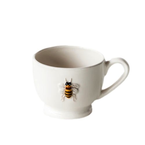 -. Title : Honey Bee Teacup / Coffee Cup, White Ceramic, 4 Inches