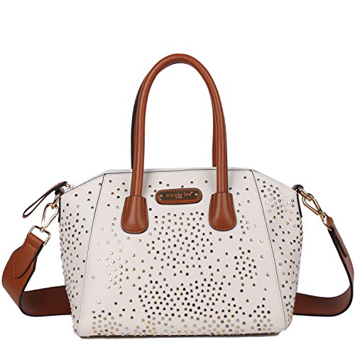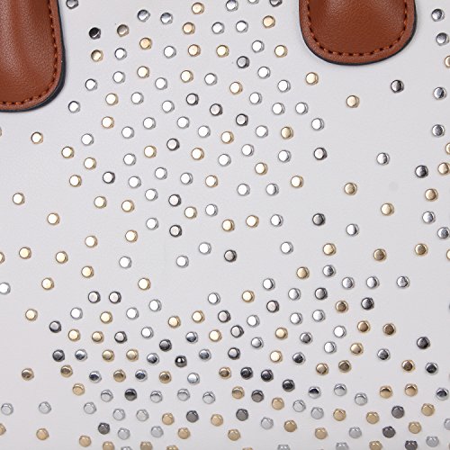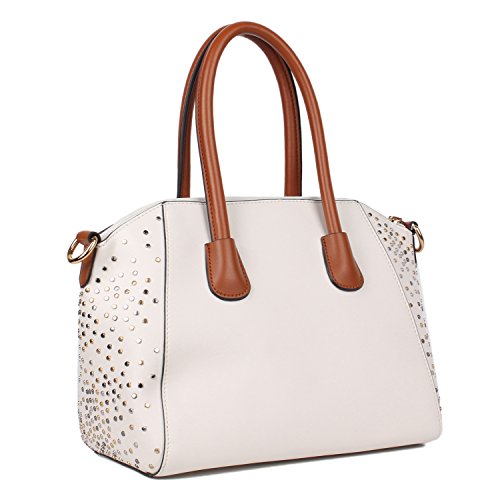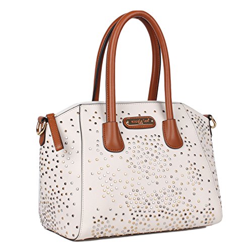 -. Title : Top Handle Studded Satchel Bag with Detachable Shoulder Strap