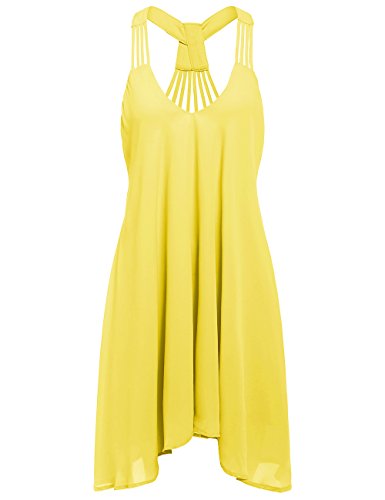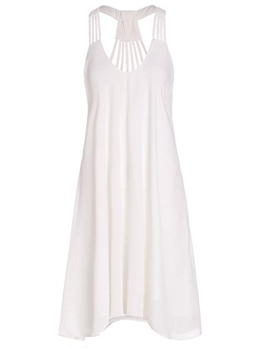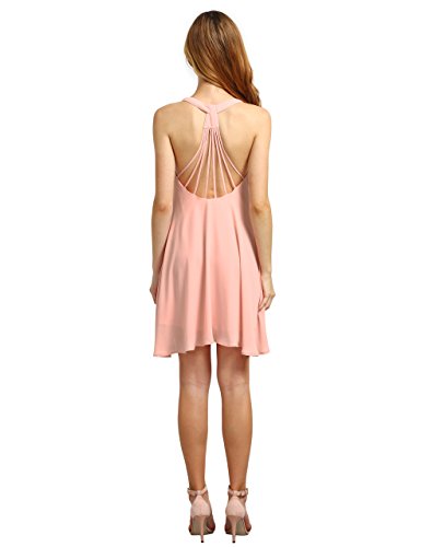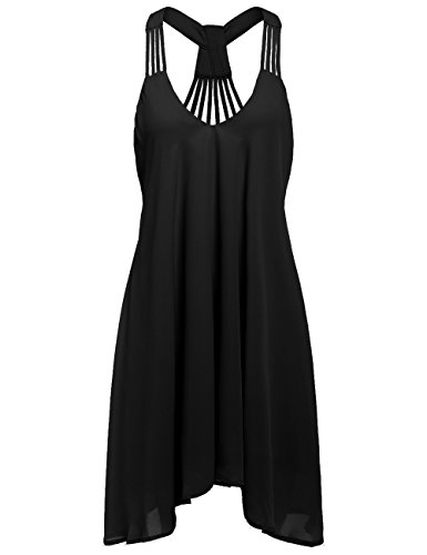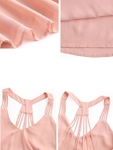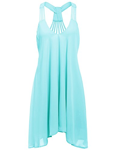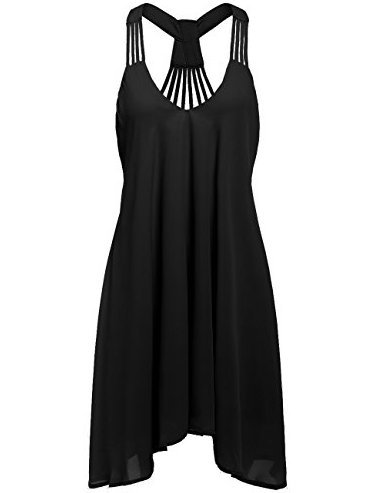 Material: 100%Polyester, light weight. Sleevless, strappy, spaghetti strap, backless, asymetrical hem.