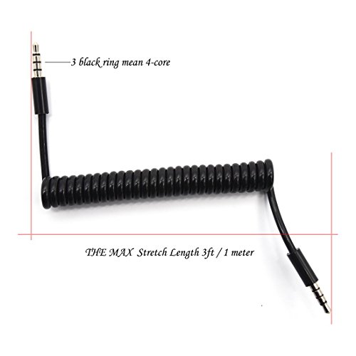 Coiled 3.5mm Jack Audio Cable - Riipoo 3 Feet 4 Pole TRRS 3.5mm Jack Male to Male Stereo Audio Aux Extension Coiled Cable, Spring Cable, Golden-plated Jack