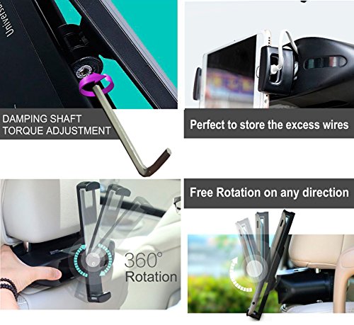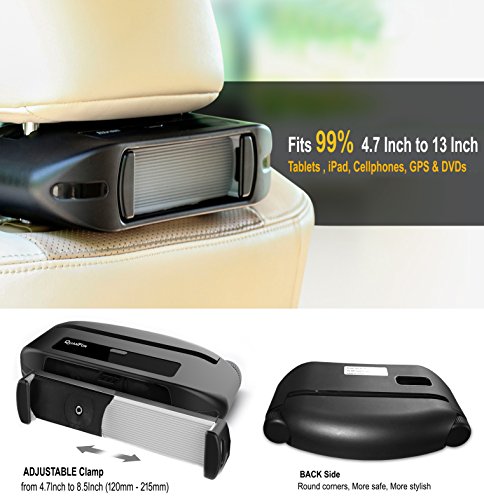 - ★[ADJUSTABLE & STRETCHABLE] QUANFUN Universal Car Headrest Mount Holder is a very compact and convenient mounting solution. The clamping arm is made of high-grade anti-skid silicone material, can be protect the device from being scratched. And also can be rotated 360 degrees, work with horizontal, vertical and any direction you want. With the auto locked design, accidentally can also be a solid grip on your phone or tablet computer. Security and Stability.