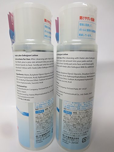 -. Binding : Misc. -. Brand : Hada Labo -. EAN : 0705332543866 -. Feature : Never miss this great offer for 2 bottles of Hadalabo Gokujyun Hyaluronic Acid lotion! / Use twice a day after cleansing face. Apply on palms and gently pat onto skin until thoroughly absorbed. / With 3 types of Hyaluronic Acid to deeply moisturize skin and help to preserve its optimum moisture balance. Replenishes and locks-in moisture for complete hydration. Skin feels significantly soft and supple. Helps improve dry and dehydrated skin, leaving it silky smooth. Skin pH balanced. Low irritation. Free of fragrances, mineral oil, alcohol & colorant. / Made in Japan -. Label : Rohto -. Manufacturer : Rohto -. MPN : 2766283 -. PackageQuantity : 1 -. PartNumber : 2766283 -. ProductGroup : Beauty -. ProductTypeName : BEAUTY -. Publisher : Rohto -. Studio : Rohto -. Title : Rohto Hadalabo Gokujyun Hyaluronic Acid Lotion (Moist) - 170ml 2bottles -. UPC : 705332543866