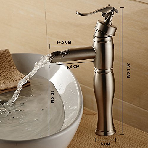Wovier Brushed Nickel Waterfall Bathroom Sink Faucet,Single Handle Single Hole Vessel Lavatory Faucet,Basin Mixer Tap Tall Body