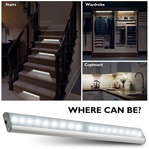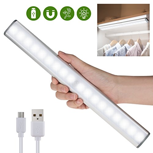 Motion Sensor Light Under Cabinet Lights, Wireless Motion Activated Closet Lights, USB Rechargeable Stick on Anywhere Magnetic LED Light for Closet/Drawer/Cabinet/Cupboard, 18 LED, White Light