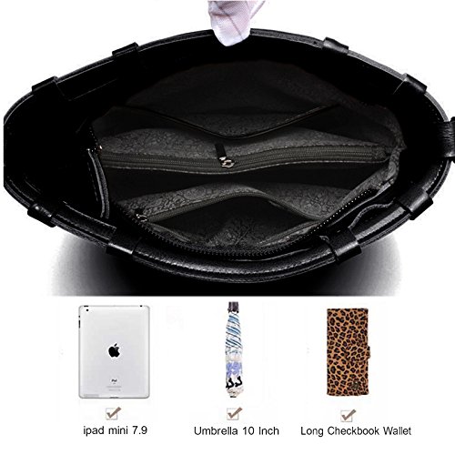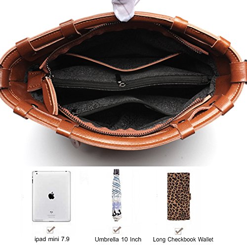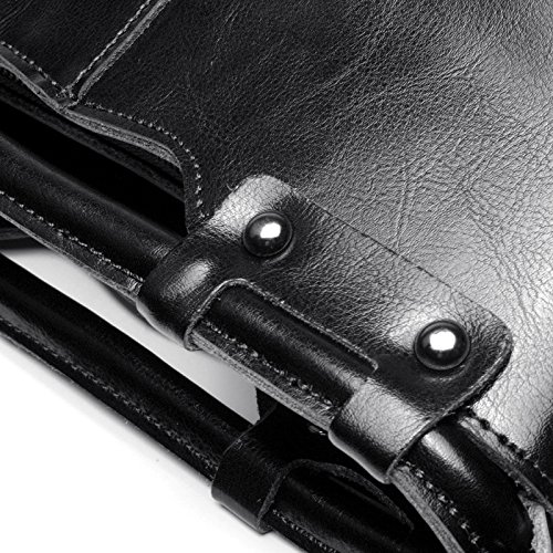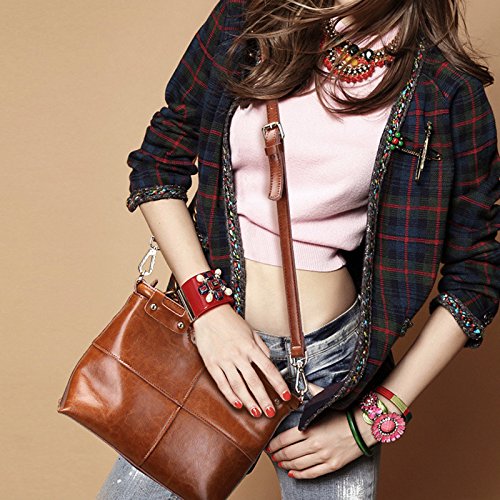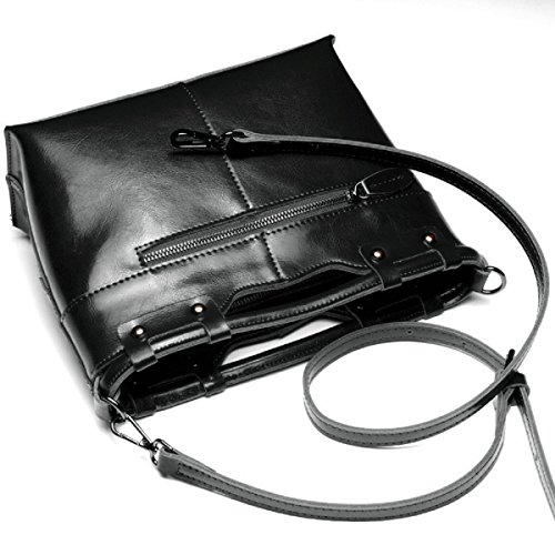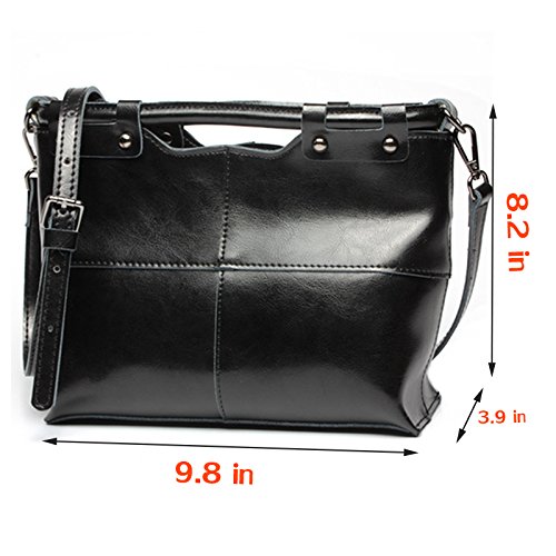 -. Feature : Made by Premium Genuine Cowhide Leather with waxing and oiling finish, high-quality polyester canvas interior, smooth, luxury, enduring use / Dimensions: 9.8"L x 8.2"H x 3.9"(fit All Smartphones / Apple iPad Mini Tablet / Small Umbrella under 10 Inch); The weight is about 1.74 pounds; The shoulder strap is about 49 inches long, fully adjustable / Spacious Room with 2 large compartments + 1 hidden zippered pocket + 1 middle zipped pocket + 1 side pouch + 1 outside zipper pocket for cell phone, ipad mini, small umbrella under 10 inch, charger, makeup, gadgets, car keys, wallets and other essentials / Exquisite workcraft with durable handle, thicken leather shoulder strap with two-row nylon stitching, the shoulder strap is removable and adjustable, convenient / Classic Space Grey color solids, heavy duty shoulder strap buckles, sturdy; Perfect for women teen girls use as daily office bag, shopping purse, crossbody bag, travel purse, etc
