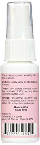 ReleaseDate : 2014-12-25 Studio : Hyland's Publisher : Hyland's Binding : Health and Beauty Product Description Hyland's Arnica Spray. Description: Muscle Aches and Pains. Arnica Montana is known for its healing power of bruising and muscle soreness. Often, as in cases of sprained ankles, the area is quite tender and the thought of touching it can send you through the roof. If you prefer not to rub in Arnicated Oil or Arnica Ointment, you can get the benefits of Arnica Montana by using Arnica Spray. Arnica Spray is an extract of Arnica Montana in isopropyl alcohol. Do not use this product on broken skin. Disclaimer: These statements have not been evaluated by the FDA. These products are not intended to diagnose, treat, cure, or prevent any disease. 0