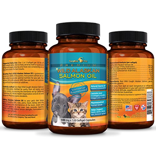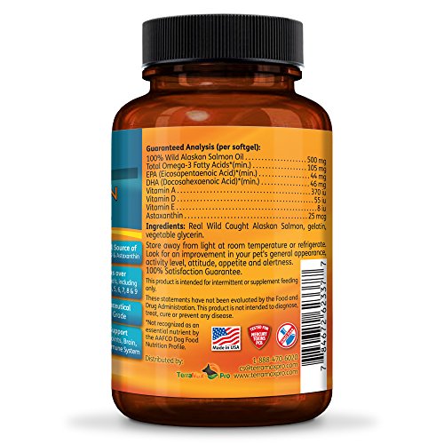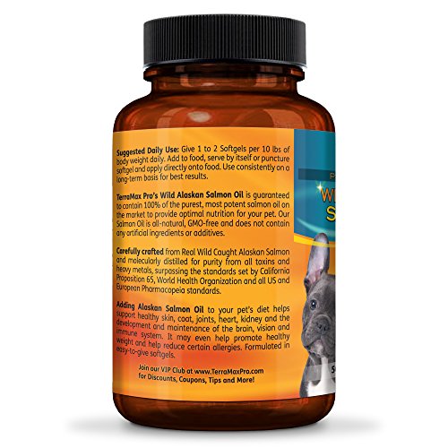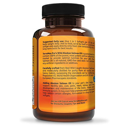 -. Feature : ✚ 100% SAFE AND ALL-NATURAL. Wild caught exclusively from the clean waters of Alaska using only sustainable and responsible fishing methods. NO fillers. NO binders. NO artificial ingredients. Just 100% of the purest, most potent fish oil on the market. TerraMax Pro's Wild Alaskan Salmon Oil is an excellent source of essential fatty acids EPA and DHA. It has over 15 different Omega's, including 3-5-6-7-8-9 and is an excellent natural source of Vitamin D and Astaxanthin. / ✚ PHARMACEUTICAL HUMAN GRADE SALMON OIL. What other companies don't tell you could be poisoning your pets! Other fish oil often contains Mercury, PCB's and other toxins from nuclear fall out or other sources. Our fish oil is carefully crafted from Wild Alaskan Salmon, caught exclusively from one of the cleanest waters in the world and molecularly distilled for purity from all toxins, surpassing the standards set by California Prop. 65 and all US and European Pharmacopeia standards. / ✚ MOLECULARLY DISTILLED FOR HIGHEST PURITY. One of the only purification methods that can remove heavy metals, PCB's and other toxins to below detectable limits for human consumption. Our Salmon oil is independently tested at a 3rd party laboratory for over 250 contaminants and is Certified Mercury free with no detectable levels of PCB's, heavy metals, pesticides & dioxins. / ✚ TRY IT RISK FREE WITH OUR UNCONDITIONAL 100% SATISFACTION GUARANTEE! We're so confident you're getting the purest and highest grade salmon oil available anywhere, we'll let you try it absolutely risk free! Use the entire bottle and if you're not absolutely thrilled, you get all your money back. No questions asked! If you're serious about your pet's health, click the Add to Cart Button Now! You're covered by our unconditional satisfaction guarantee! / ✚ VETERINARIAN RECOMMENDED. Premium Wild Alaskan Salmon Oil has been recommended by veterinarians for cats and dogs of all ages, sizes, breeds and activity levels. Adding TerraMax Pro's Premium Wild Alaskan Salmon Oil as a treat to your cat or dog food helps support healthy skin, coat, joints, cardiovascular health, nervous system and the development and maintenance of the brain, eyes and immune system. It may also help promote weight loss and help reduce certain allergies and yeast infections.