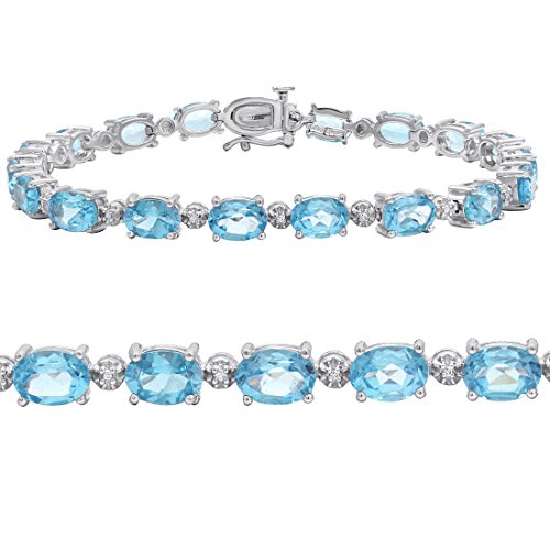 -. Title : Gemstone and Diamond Tennis Bracelet in Sterling Silver 7 1/2 inches Choose Swiss Blue Topaz or Peridot
