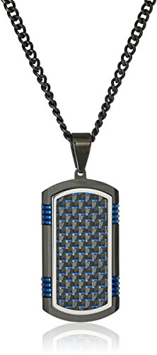 - The black and blue carbon fiber inlay of this dog tag will give a modern feel to your individualistic style.