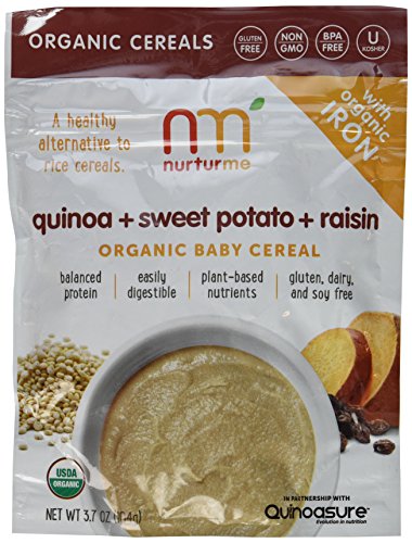 NurturMe Organic Quinoa Baby Cereals are the first and only pure quinoa-based cereal for infants. A healthy alternative to traditional rice cereals, NurturMe Organic Quinoa Baby Cereal is a complete and balanced protein that is iron fortified and easily digestible.