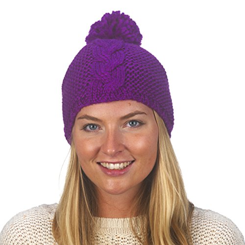 -. Title : FU-R Headwear - Women's K-Pow, Fleece Lined Wool Knit Pom Hat