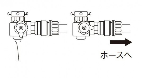 水を2方向へ切り替え。