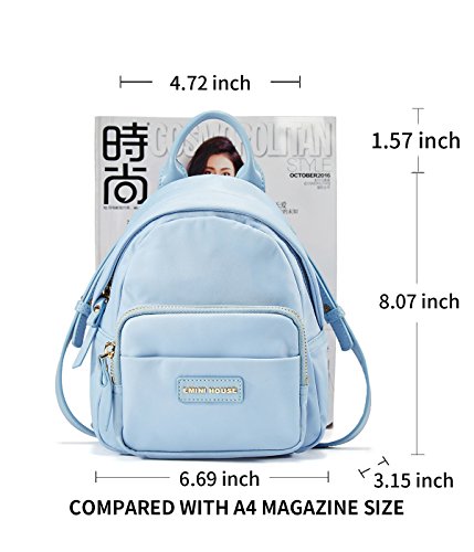 A fashion collection of women backpack, made of high quality waterproof nylon and Napa leather, makes this backpack lightweight, breathable, waterproof and durable. It's also a brilliant organizer, large capacity with 1 external zipper pocket, 1 external open pocket, 1 interior main pocket, 1 interior zipper pocket, 1 interior slit pocket and 1 bottom card slot, which can keep your iPad mini, umbrella, bottle, phone, wallet and other daily necessities well organized. Dimensions: 6.69"L x 3.15"W x 9.64"H, big enough for your all daily outfits (can not put in A4 magazine), and it is just the perfect size as a casual mini backpack.
