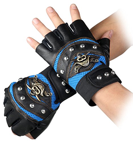 Steampunk Gothic Gloves Mens Vintage Geuuine Leather Captain Fingerless Mittens