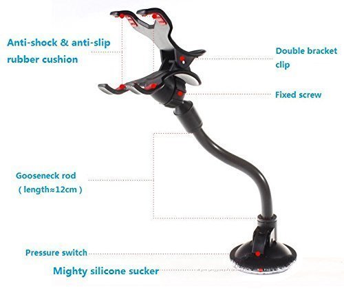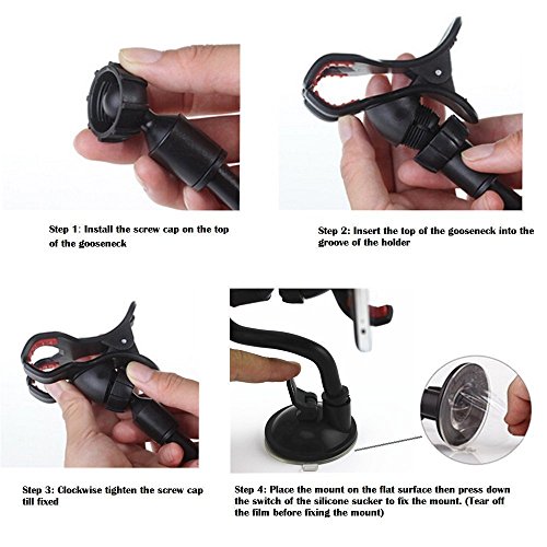 -. Feature : Specially design for iphones 6s plus/6s/5s/5c/5/4s/4, samsung galaxy s5 s4, htc, blackberry and gps / pda / psp / ipod/ mp3 / mp4 players, etc / Double clamps design, it is that sink in to grab your device for a strong stable hold and prevent your phone device drop to the ground / Long flexible arm gooseneck design for easy positioning and bring the phone closet to the driver / Strong suction cup design, you can mounting on the car windshield/dashboard or your home desk, smooth wall, etc / Seven-day service, if you have any question please feel free to contact us