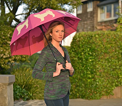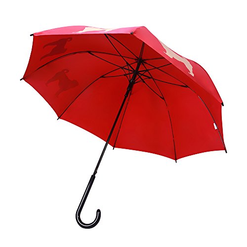 -. Feature : Beautiful and functional rain umbrella that protects the user from wind-blown rain / Bold rich colors showing off dogs, cats and other themes silkscreened onto satin-feel 190T pongee polyester / Superbly made using the best materials featuring auto-open which is easy to use and easy to close / Wooden handles, fiberglass ribs and arms, steel shafts, pongee polyester canopy, steel cap, plastic tips and Velcro strap / 34.5 Inch long by 5 Inch closed, 48 inch arched canopy; Not too large for a lady, not too small for a man