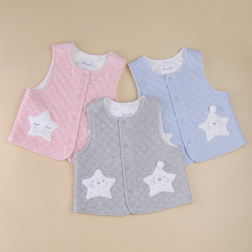 앙증맞은 별 아플리케 자수로 포인트가 큐트함을 더하여 겨울 실내나 외출시 따뜻하게 입을 수 있는 선물용으로 좋은 삼중지 조끼입니다.