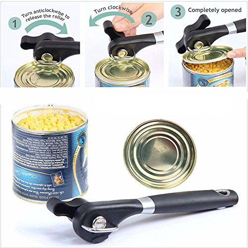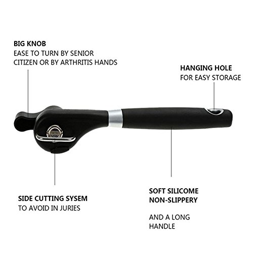SIMPLE TO USE: The easy to turn non-slip turning knob makes it so that anyone can use this can opener. You no longer have to worry about cutting yourself when opening cans with the smooth edge cutting safety mechanism.