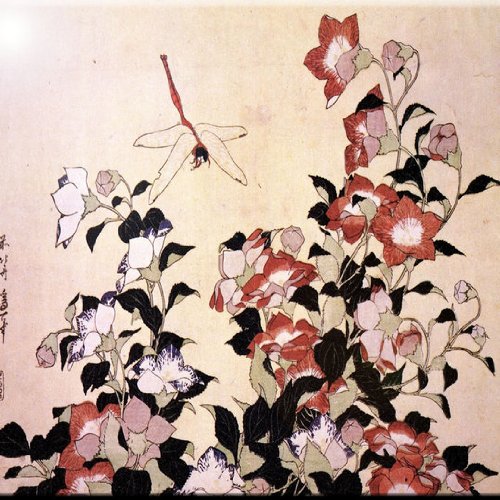 Rikki Knight RK-8intilec-3218 8" X 8" Katsushika Hokusai Art Chinese Bell Flower Dragon-Fly Design Ceramic Art Tile
