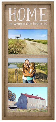Malden International Designs Burlap Wall Sentiments Silkscreened "Home is Where the Heart is" Picture Frame, 3 Option, 3-4x6, Tan