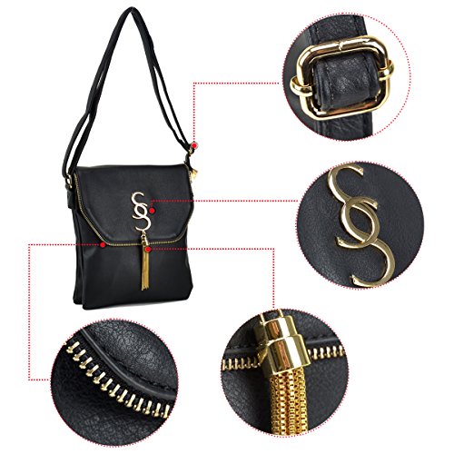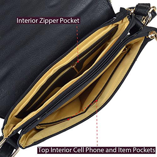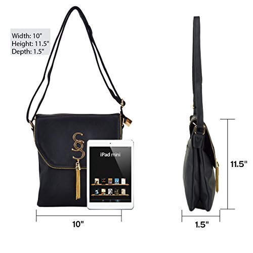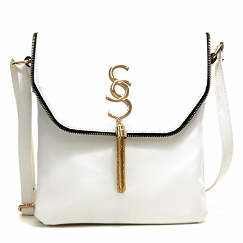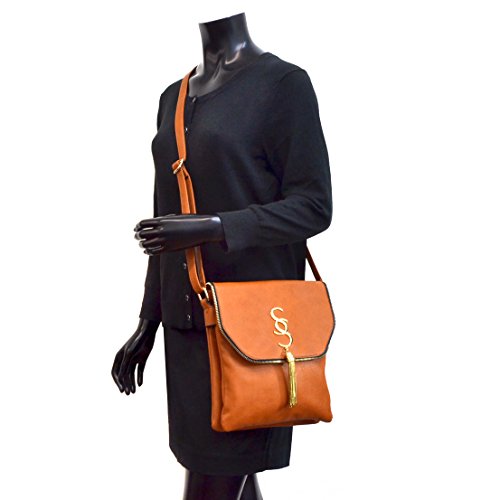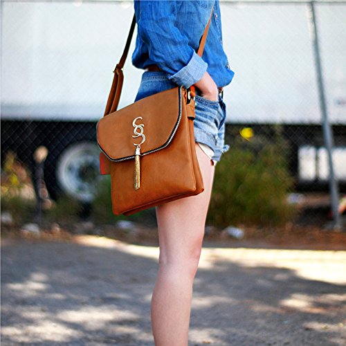 -. Brand : Dasein -. Department : womens -. Feature : A fashionable and stylish messenger bag in eco-friendly vegan leather with trendy gold-tone metal embblem and tassel and zipper trim / This crossbody bag is lightweight and comfortable to wear with adjustble long shoulder strap with a length of approx 50" end to end / Double compartments with top zip closure and additional flap snap for extra secure / Keep everything organized in this purse with two main compartments as well as 1 zip and 2 slip item pockets. Interior is fully lined in gold soft fabric which makes it easy to find things / Approx. Size: 10"W x 11.5"H x 1.5"D. The crossbody is roomy for all essentials when you travel -. ProductGroup : Shoes -. ProductTypeName : HANDBAG -. Size : Medium -. Title : Dasein Womens Flap Crossbody Bag Fashion Messenger Shoulder Bag w/Double Zipper Compartments
