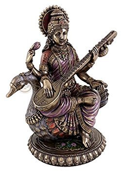 -. Title : Hindu Goddess of Music and Knowledge Saraswati Sitting on Swan Playing the Vina Statue Sculpture