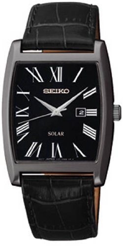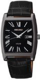 Seiko, Solar, Men's Watch, Stainless Steel Black Ion Plated Case, Leather Calf Skin Strap, Solar Powered Quartz, SUT887