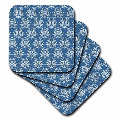 3dRose Gorgeous French country Style Floral Pattern in Dusty Blue - Soft Coasters, Set of 8 (cst_219105_2)