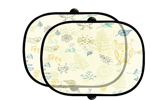 -. Title : Owls With Flower Insect 2 Pcs Auto Foldable Front Rear Side Window Sunshade Mesh