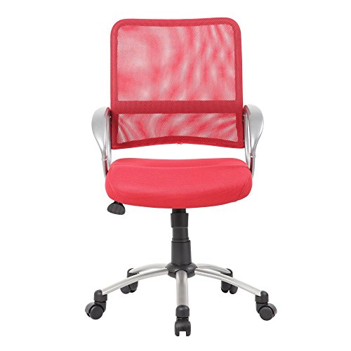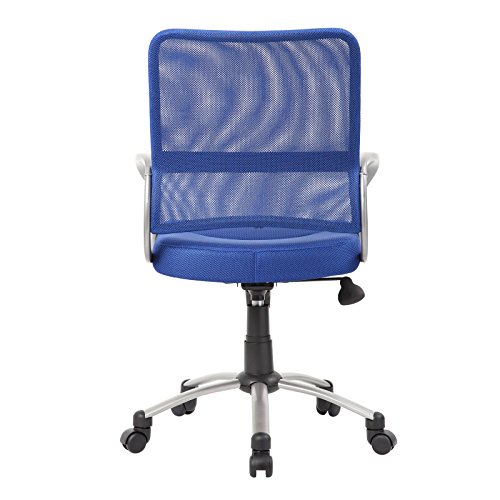 -. Brand : Boss Office Products -. Color : Orange -. Feature : Dimensions: 25W x 25D x 42H in. / Back dimensions: 19W x 18H in. / Seat dimensions: 19W x 18.5D in. / Mesh upholstery in your choice of color / Metal pewter loop arms -. Label : Boss Office Products -. Manufacturer : Boss Office Products -. Model : B6416-BE-Parent -. MPN : B6416-BE -. PackageQuantity : 1 -. PartNumber : B6416-BE -. ProductGroup : Furniture -. ProductTypeName : HOME_FURNITURE_AND_DECOR -. Publisher : Boss Office Products -. Studio : Boss Office Products -. Title : Boss Office Products Mesh Back Task Chair with Pewter Finish in Blue