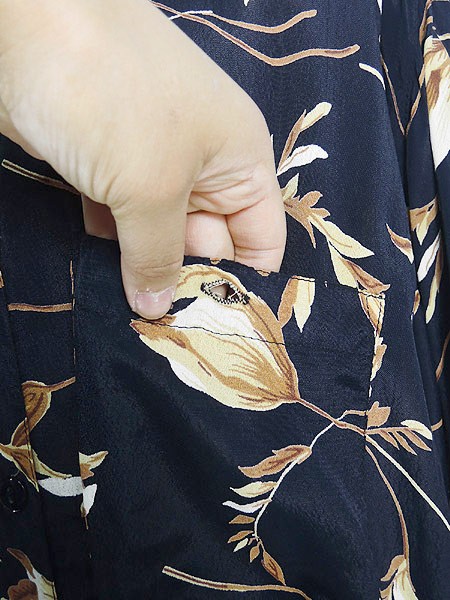 Ladies ブランド- カラー黒 メール便不可 コンディション★★★ 素材レーヨン 表記サイズM スタッフコメント第2ボタン下、前立てに糸引きあり。透け感があります。 実寸サイズ 着丈 75 cm 身幅 52 cm 肩幅 46 cm 袖丈 55 cm ※ウエスト・ヒップ以外は平置き採寸