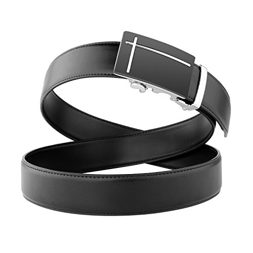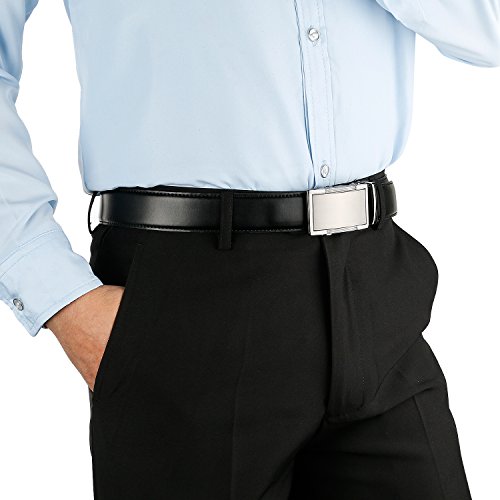 JasGood Men's Genuine Leather Ratchet Dress Belt with Automatic Buckle Features: