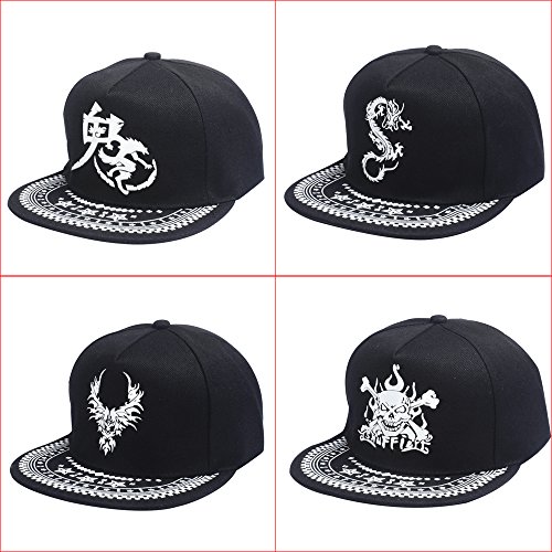 Product Description Description: 100% Brand New and High quality New fashion, cool and stylish cool design Unisex, Designed for boys as well as girls Adjustable strap on the hat back Perfect idea to wear it to concert, party, bars... The more light absorbed, the longer the effect lasting Absorb strong light for 5-15 minutes, can emitting light of about 30-60 minutes. Perfect for yourself and your friends Specifications:? Gender: Unisex Material: Canvas Style: Fashion Color: Black Pattern: Evil, Skull, Dragon, Wolf Brim Width: 6.7 cm Depth: 12 cm Head Circumference: 59-62 cm Strap Type: Adjustable? Note: 1. Please allow 1-2cm error due to manual measurement. Please make sure you do not mind before you bid. 2. The colors may be different as the difference display, Please understand Package Includes: 1 x Baseball Cap Please kindly Note: Items will be repackaged to save your shipping charge to be environmentally friendly. We guaranty the item will be protected well in buble bags, No retail box! 0