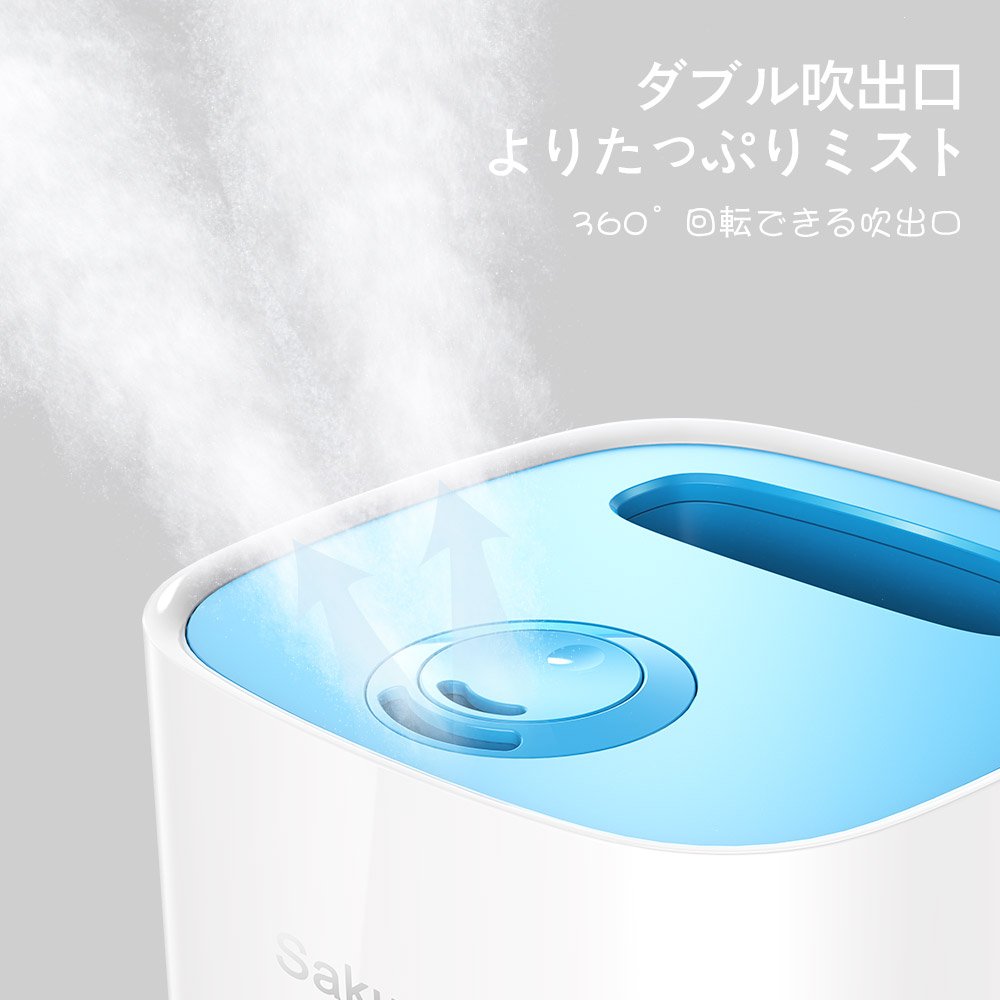 【大容量、長時間連続稼働】※ご注意 カーペット、タオルや毛布などの上に置いたら、底部の吸気口が詰まるとミストの噴射が低くなります。また、ミストが出られなくこともありますので、直接に床、台や机などの上に置いてご使用ください。3.5Lの大容量水タンク、連続で約15時間以上稼働することができます。頻繁に水を交換する手間がなく、暖房や冷房よりの乾燥を抑え、肌に潤い を与えます。ホコリや花粉などを抑えることができます。