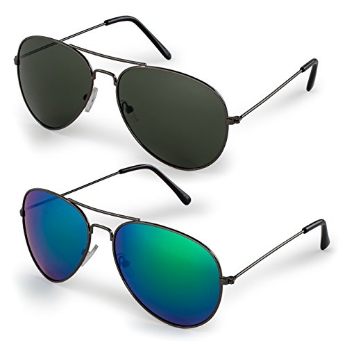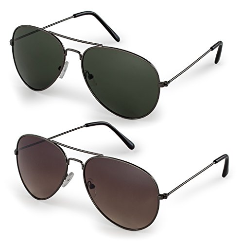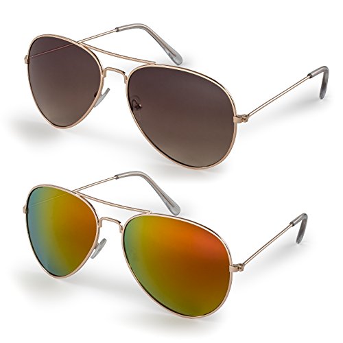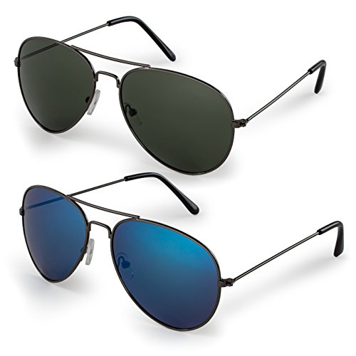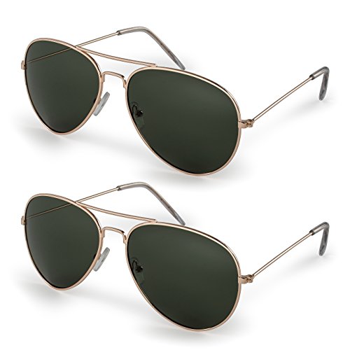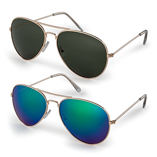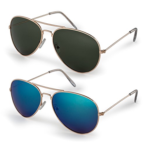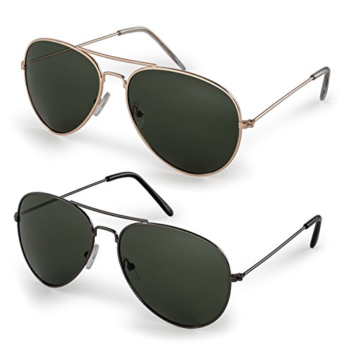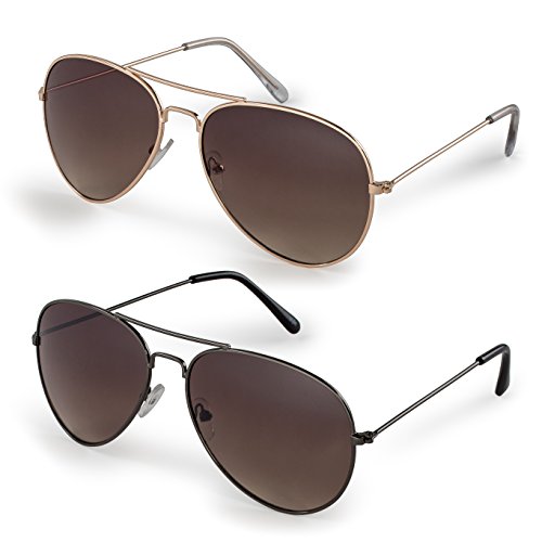 | Quality Impact-Resistant Aviator Sunglasses 100% UV Protection-Pack of 2 |